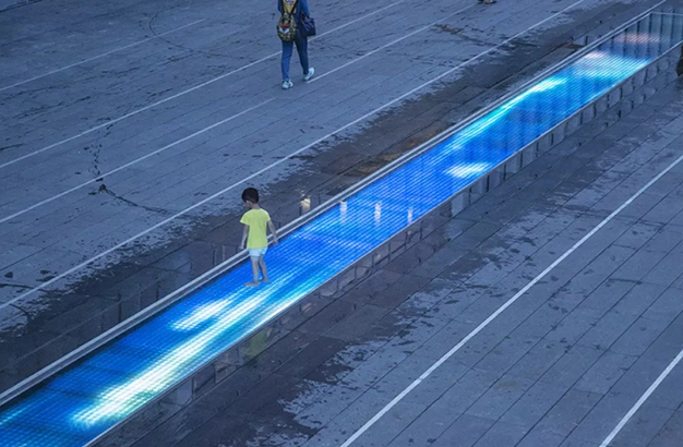 水本無形,它的物理特性讓它能輕易地跟隨容器而呈現(xiàn)不同的面貌。獨(dú)特的延展性使得水能呈現(xiàn)無以計(jì)數(shù)的不同效果。燈光的布置,介質(zhì)的紋理,顏色和動(dòng)態(tài)都能給水帶來無窮的變化